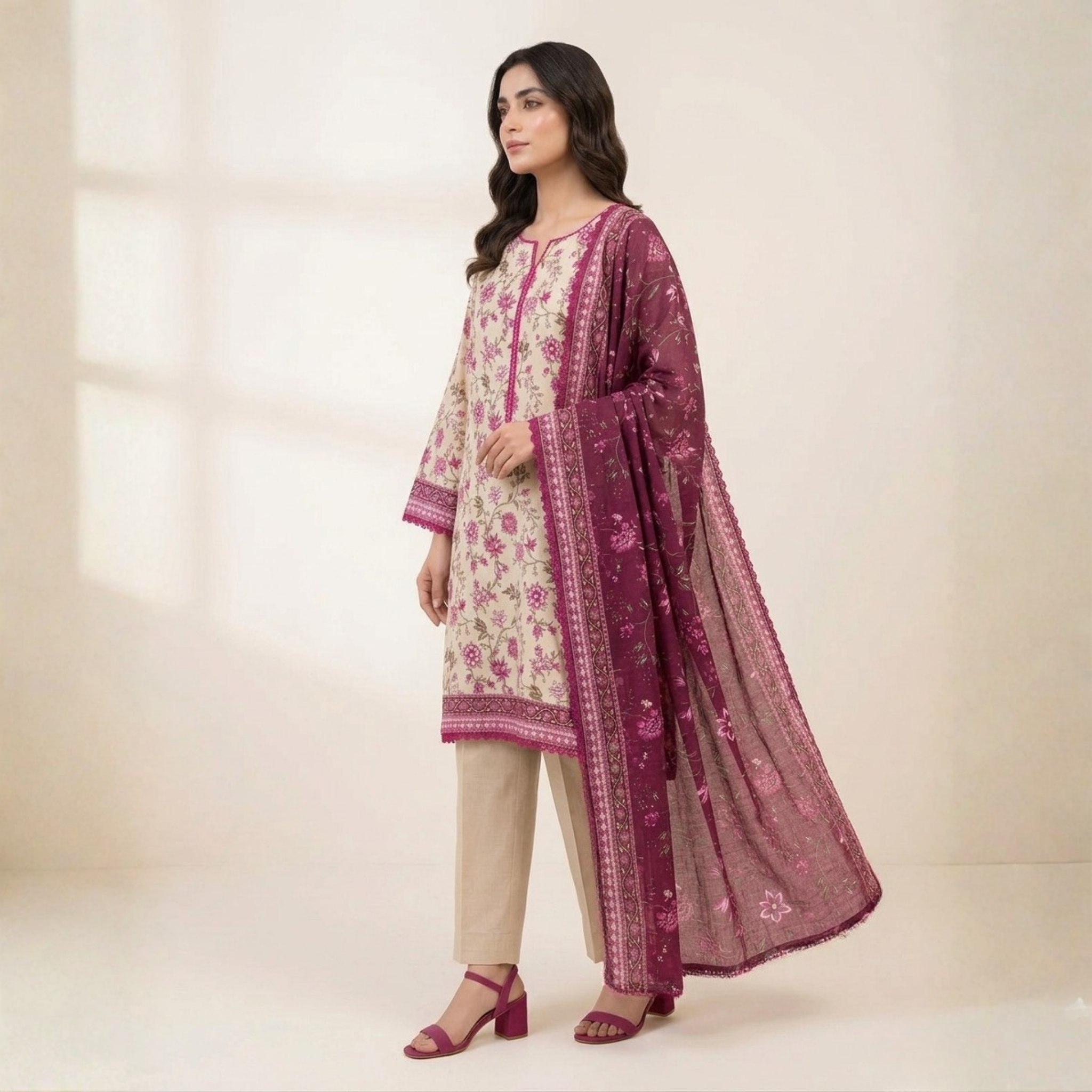 👗 3-piece set: shirt, trouser, and lawn dupatta